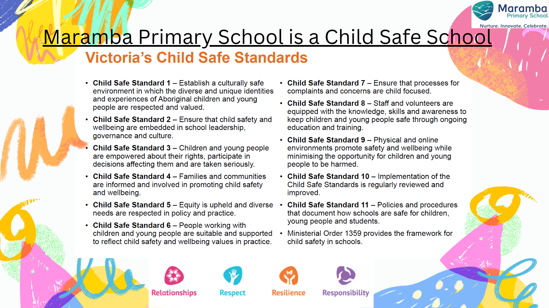 At Maramba Primary School, we recognise that students and their families are vital partners in maintaining a safe school community. We welcome your feedback and suggestions to help us continually improve our child safety measures.