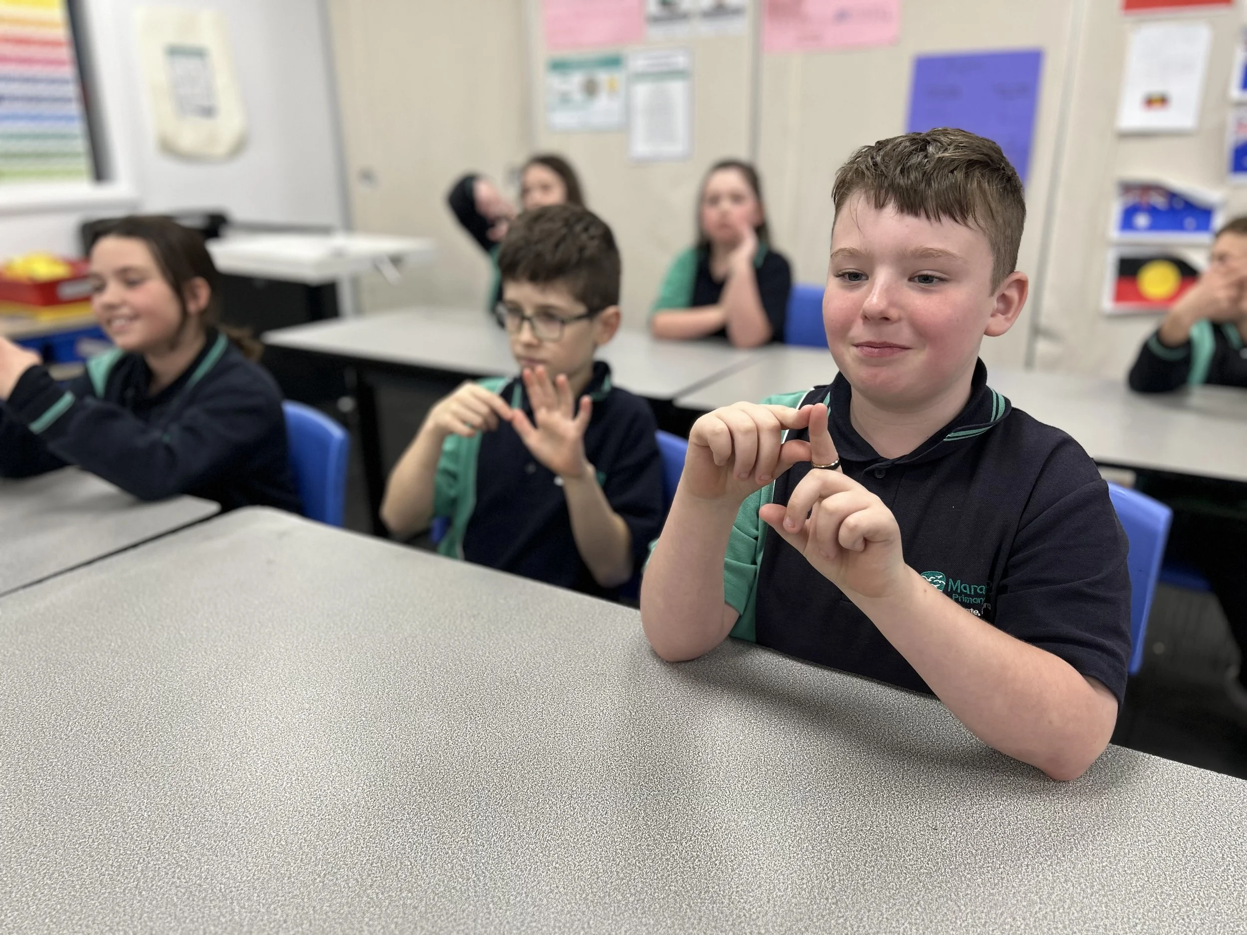 At Maramba Primary School, all students from Foundation to Year 6 participate in weekly Auslan (Australian Sign Language) lessons as part of our Languages Other Than English (LOTE) program.